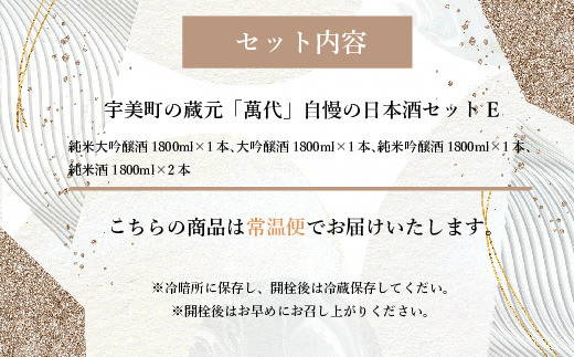 日本酒 飲み比べ 萬代自慢 日本酒セットE 1800ml 5本 [小林酒造本店 福岡県 宇美町 um40azo740008] お酒 純米大吟醸 純米吟醸酒 純米酒 辛口 大吟醸