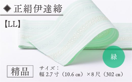 伊達締め 正絹 精品 1本 緑 01【LL】 精品 幅2.7寸(10.6cm)×8尺(302cm) [森博多織 福岡県 宇美町 um40azo810027] 伊達締 博多織 日本製 織物 国産 絹 着物 緑色 メール便 メール便対応