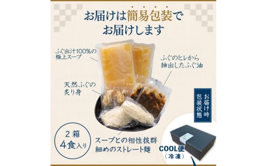 【 先行予約 】 ふぐ ラーメン 4食 入り 箱 とらふぐ 骨 まふぐ 切身 麺 スープ 下関 山口 【2026年3月より発送】