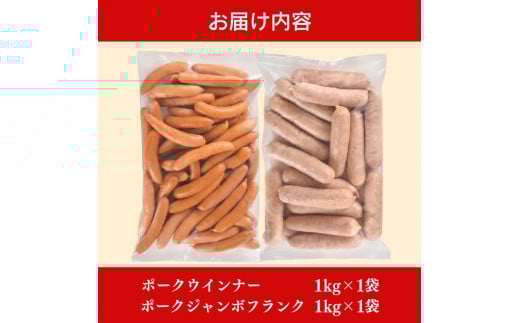 訳あり ウインナー 2kg セット 冷凍 ( ポークウインナー ポークフランク 簡単調理 惣菜 大容量 おかず 家庭用 お弁当 加工品 豚肉 朝食 カレー ホットドッグ パーティー バーベキュー キャンプ 簡易包装 ) 山口県 下関市 肉特集