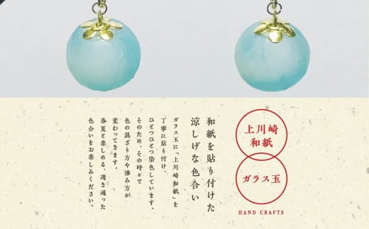 「和紙玉イヤリング<水色/ゴールド金具>」