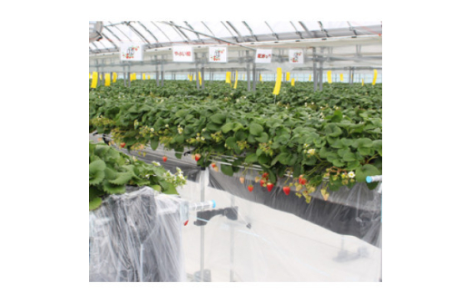 イチゴの高設溶液栽培システムを導入し、令和2年から収穫を始めました。