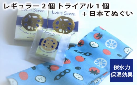 No.309 Lotus Savon レギュラー2個 トライアル1個+日本てぬぐい / 石鹸 保水力 保湿効果 大阪府