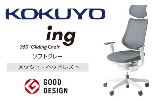 Mih2_コクヨチェアー イング(ソフトグレー・本体白)/ヘッドレスト・メッシュ/カーペット用(Wキャスター) /在宅ワーク・テレワークにお勧めの椅子