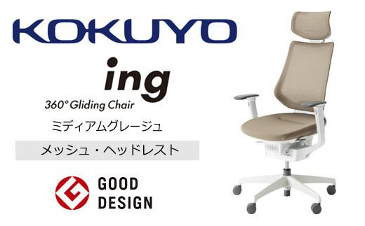 Mih3_コクヨチェアー イング(ミディアムグレージュ・本体白)/ヘッドレスト・メッシュ/カーペット用(Wキャスター) /在宅ワーク・テレワークにお勧めの椅子