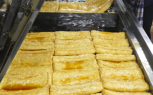 当社熟練の職人達が一枚一枚丁寧に手揚げしているため、中身は空気の多いふっくら仕上げで味わいはふくよか。焼いても煮ても美味しくお召し上がりいただけます。