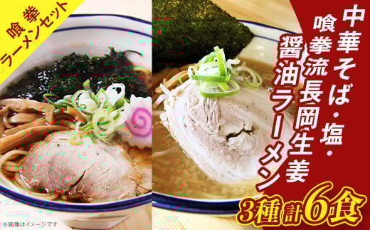 6. 65-03喰拳ラーメンセット6食(中華そば・塩・長岡生姜醤油各2食)
