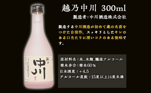 越乃中川・・製造する中川酒造が初めて蔵の名前をつけた自信作。スッキリとしたキレのある口当たりに深いコクのある後味です。