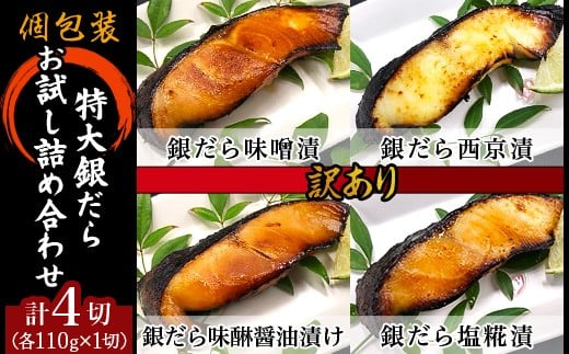 H7-C4【訳あり】個包装特大銀だら4切 お試し詰め合わせ