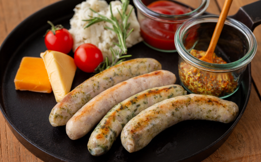 (バッケ:豚肉、ふきのとう、卵、塩、羊腸、砂糖、七味唐辛子、ジンジャー/行者ニンニク:豚肉、行者ニンニク、卵白、塩、羊腸、砂糖、七味唐辛子/エシャロット:肉、エシャロット、塩、羊腸、砂糖、ジンジャー/コシアブラ:豚肉、コシアブラ、卵、塩、羊腸、砂糖、白コショウ、七味唐辛子)