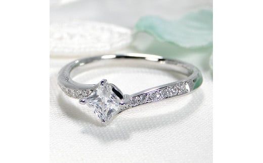 110-9-5 指輪 PT900 プラチナ ダイヤモンド 計 0.5ct プリンセスカット エンゲージ 四角形 ウェーブ S 字 エタニティ 【 f173-pt 】※5号 ALPAZ065-5