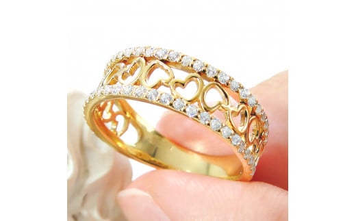 50-9-2 指輪K18YG イエローゴールドリングダイヤモンド計0.36ct 小さいハート18金【f193-k18yg】※9号 ALPAZ052-9