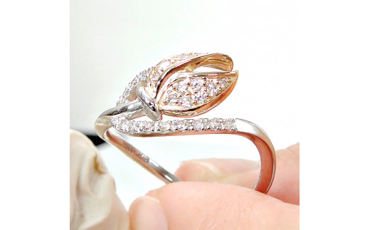 45-9-3 指輪Pt900 K18PG コンビリングダイヤモンド計0.22ct チューリッププラチナピンクゴールド【f194-ptpg】※14.5号 ALPAZ049-14_5
