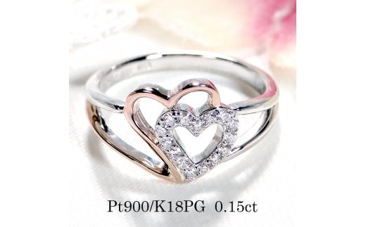 45-9-2 指輪PT900 K18PG ダイヤモンド0.15ct プラチナピンクゴールドハートダブルコンビリング【f178-ptpg】※12.5号 ALPAZ050-12_5