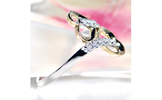 40-9-8 指輪Pt900 K18YG ダイヤモンド0.14ct コンビリングクロスダブルハートプラチナイエローゴールド【f175-ptyg】※5号 ALPAZ040-5
