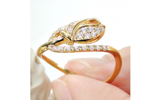40-9-6 指輪K18YG イエローゴールドリングダイヤモンド計0.22ct チューリップ18金【f194-k18yg】※8号 ALPAZ042-8