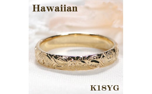 35-9-5 指輪レディースK18YG セミオーダー【幅3.5mm/4mm】ハワイアンジュエリープルメリア花葉波【208-k18yg】※8.5号 ALPAZ035-8_5