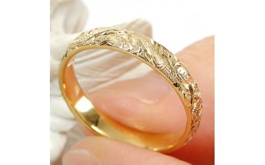 35-9-5 指輪レディースK18YG セミオーダー【幅3.5mm/4mm】ハワイアンジュエリープルメリア花葉波【208-k18yg】※14.5号 ALPAZ035-14_5