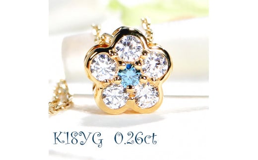 35-9-3 ネックレスK18YG ダイヤモンドブルーダイヤ0.26ct フラワーモチーフリバーシブルペンダント伏せ込み裏ダイヤ【f171-k18yg-2】 ALPAZ037