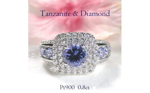 130-9-8 指輪 PT900 プラチナ 大粒タンザナイト ダイヤモンド 0.8ct 取り巻き スクエア リング【f241-pt】※11.5号 ALPAZ013-11_5