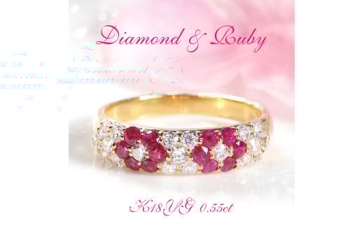 指輪 K18YG イエローゴールド ダイヤモンド 0.5ct ルビー レディース リング フラワー 花 パヴェ 月甲丸【f236-k18yg-ru】 ※9号 ALPAZ099-9