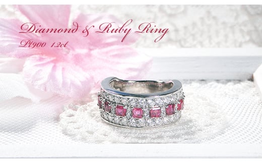 指輪 プラチナ PT900 ダイヤモンド 1.2ct 幅広 ルビー スクエア 誕生石 レディースリング 大ぶり ゴージャス ジュエリー【f249-pt-ru】※11.5号 ALPAZ135-11_5
