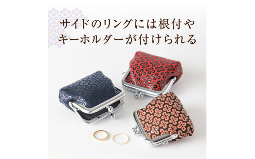 がま口タイプの指輪入れです。口が大きく開くので中が見やすく、出し入れもしやすくなっています。手の中に納まるサイズで、中には仕切りがあります。小さめの小銭入れとしても使えます。