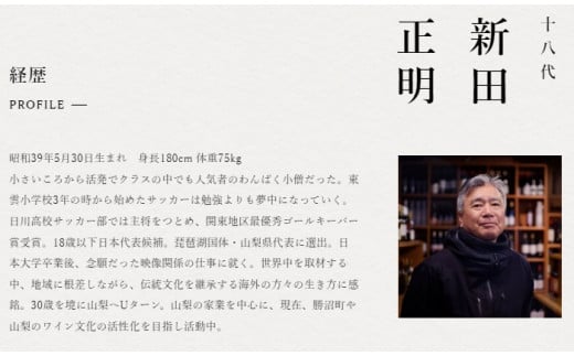 ・寄附者様の好みをお聞きし、甲州市のワインショップ新田商店・店主「新田正明」がセレクトした甲州市ゆかりのワインが届くセットです。