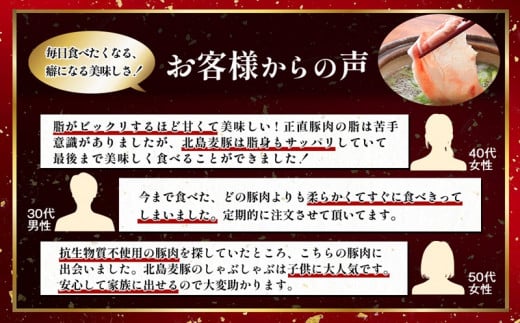 大切に育てられた北島豚は、サラサラとして口溶けの良い脂身と赤身の旨味がたまりません。さらにアクも少なく肉のくさみもありません。
