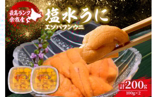 【先行予約:2026年6月以降発送】北海道余市町 最高ランク 塩水うに エゾバフンウニ 200g 100g×2パック 超希少品 うに 雲丹 塩水パック 最高ランク 上ランク 希少 入手困難 口の中でとろける濃厚な味わい
