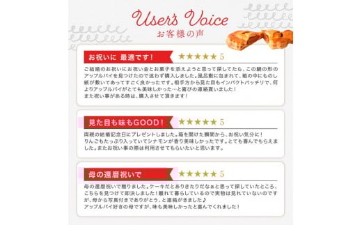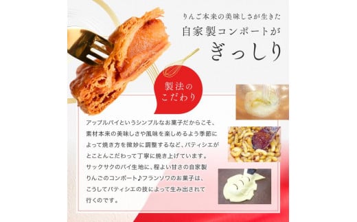 りんご(国産)、小麦粉、バター、糖液(砂糖、ぶどう糖)、杏ジャム、鶏卵、小麦粉、砂糖、乳等を主要原料とする食品、還元水飴、チョコレート菓子、ブランデー、レモン果汁、シナモン、食塩/香料(一部に小麦、卵、乳成分を含む)