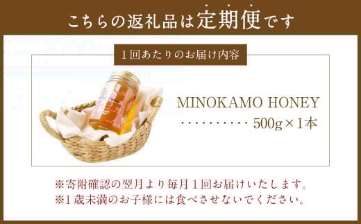 【6ヶ月定期便】国産 無添加 MINOKAMO HONEY はちみつ 1本(500g)×6回 | 藤井養蜂 蜂蜜 ハニー 純粋 非加熱 百花蜜 定期便 岐阜