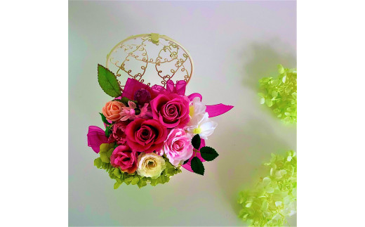 母の日の贈り物は、ピンクの花いっぱいのプリザーブドフラワーで