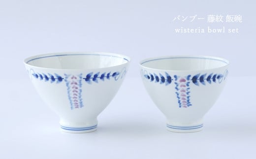 シンプルな形状に、味のある藤の花が施された夫婦茶碗になります。