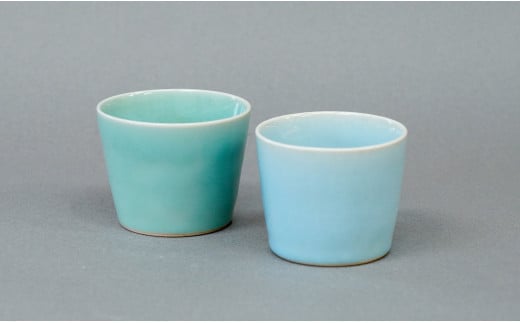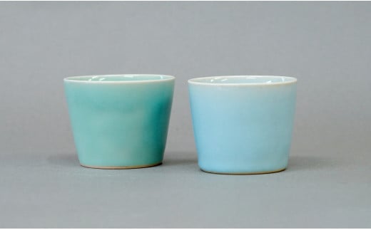 青磁の代表的な色合いである「翡翠・天青蕎麦猪口2色セット」です。