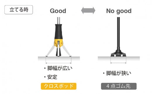 レッドドットデザイン賞受賞!クロスポッドは安心してどこにでも立てられる1点杖です