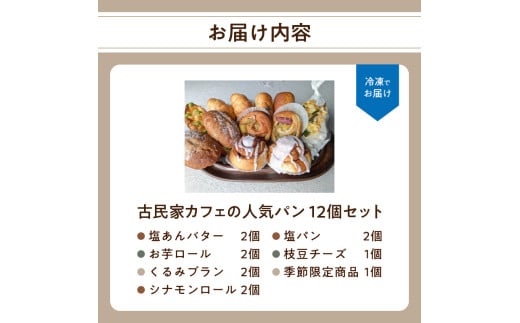 大分の食材を使った古民家カフェの人気パン12個セット パン 人気 詰合せ セット 古民家 カフェ 大分 しっとり ふんわり バター 塩 あんこ シナモン くるみ トースター 簡単 コーヒー 小麦 ブラン 冷凍 B06006