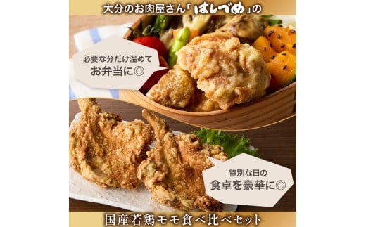 大分のお肉屋さん「はしづめ」の国産若鶏モモ食べ比べセット 骨付きモモ2本と骨なしモモ500g 加熱済み レンチン 鶏肉 から揚げ 調理済 肉 鶏モモ 食べ比べ おかず 惣菜 揚げ物 お弁当 おつまみ 冷凍 チキン クリスマス 誕生日 A03056