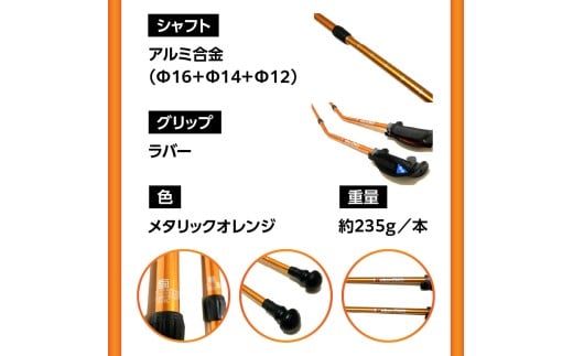 7. ウォーキング Issoku-CHO(1足長) メタリックオレンジ 2本セット 大分県 大分市 2本セット ウォーキング 歩く 賞 受賞 日用品 歩行補助 アウトドア R17016