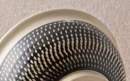 優しい色合いの土に職人がリズミカルに飛び鉋を施した器です。