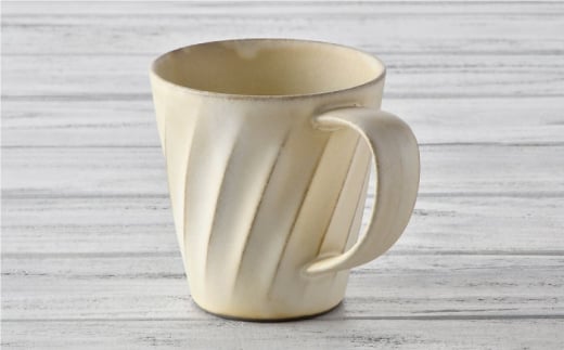 土の温もりが感じられる、ねじり模様のモダンなマグカップです。