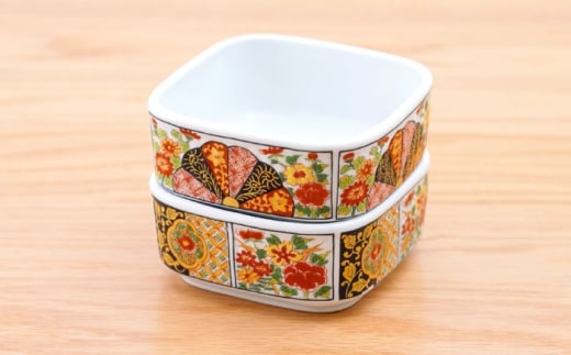 7. 【波佐見焼】角パック 古伊万里絵変り 2柄セット 扇牡丹・木甲牡丹【団陶器】 [PB220]