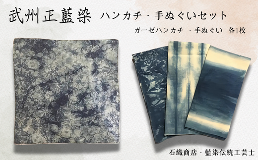 A-19 武州正藍染 ハンカチ、手ぬぐいセット(各1枚)