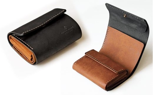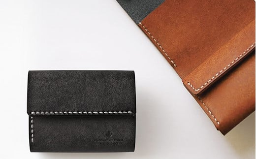 お札を折らない三つ折り財布 14 ブラックブラウン
