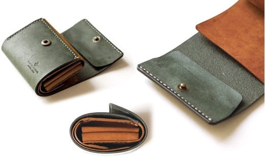 お札を折らない三つ折り財布 09 グリーンブラウン