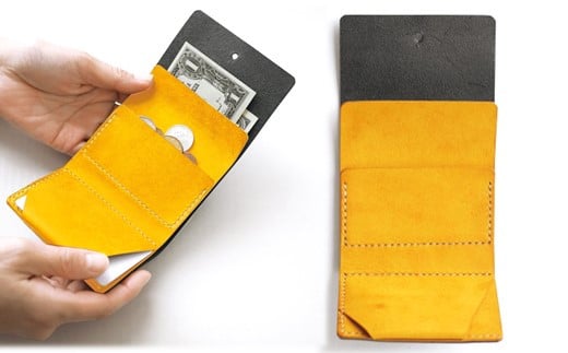 お札を折らない ミニ 財布 13 ブラックイエロー