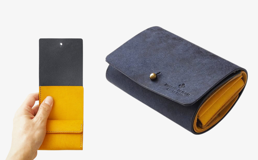 お札を折らない三つ折り財布(ギボシVer)【全18色】 14 ネイビーイエロー
