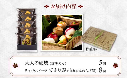 和菓子セット 「 お寿司 そっくりな わらび餅 8個+ 大人の 虎焼 5個 」お菓子 和菓子 スイーツ どら焼き 生どら焼き セット わらびもち おかし おやつ ギフト 広島県福山市/株式会社虎屋本舗 和スイーツ 和風スイーツ すいーつ あんこ 小豆 お取り寄せスイーツ 和菓子詰め合わせ 広島 福山 [BADH002]