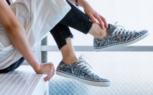 靴 デニム抜染(ばっせん)スニーカー 27.5cm 靴 ファッション シューズ ペイズリー柄 メンズ レディース 広島県福山市/山陽染工株式会社 [BADS007]