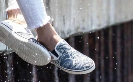 靴 デニム抜染(ばっせん)スリッポン 22.5cm 靴 ファッション シューズ ペイズリー柄 メンズ レディース 広島県福山市/山陽染工株式会社 [BADS010]